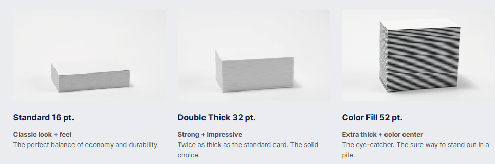 Double Thick – 32 pt. Twice as thick as standard for a strong, substantial in-hand feel.