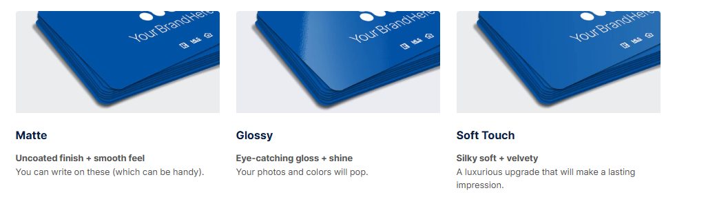 Markful business cards are available in three finish/coating options so you can choose the look and feel that fits your brand.